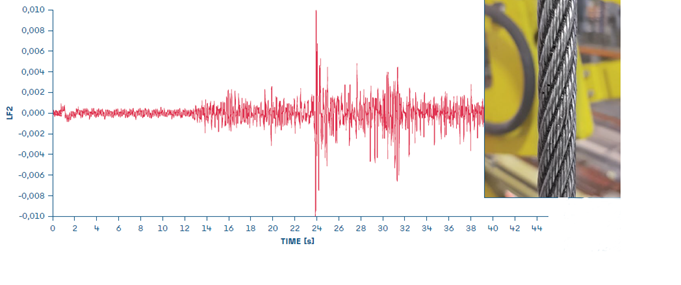In dit geval is het gemakkelijk om beschadigde draden te vinden aan het oppervlak van de kabel, maar daar zijn wel langdurige werkonderbrekingen van de fabrieksinstallatie voor vereist. De MRT is nuttig om elk defect aan de kabel te ontdekken, om de situatie te controleren en om de stopzetting van de installatie en de vervanging van de kabel(s) in te plannen.